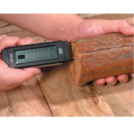 • Uređaj prikazuje vrednost vlage i kalibrisanje za evropska drva