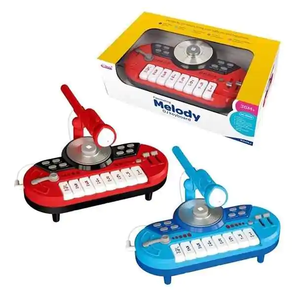 • Ovaj DJ mikser i mini klavir sadrži 8 tipki za klavir, 8 zvukova bubnjeva, 8 ritmova, 2 vrste tonova, 10 ritmičkih svetala, 8 demo pesama, kao i mogućnost podešavanja jačine zvuka i promene ritma. Tu su i DJ disk, karaoke funkcija sa mikrofonom i ulazi za MP3 i mobilni telefon, što omogućava da deca pevaju i sviraju svoje omiljene pesme.