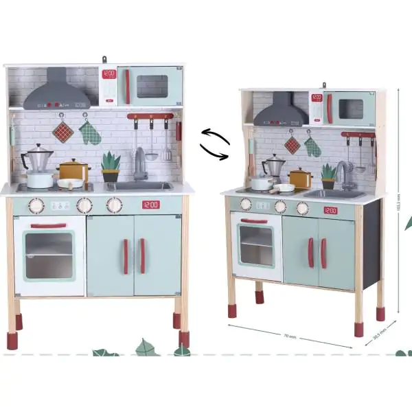 • Ova kuhinja obično dolazi sa raznim detaljima poput šporeta, sudopera, i dodataka poput posuđa i hrane, što podstiče kreativnost i maštu.