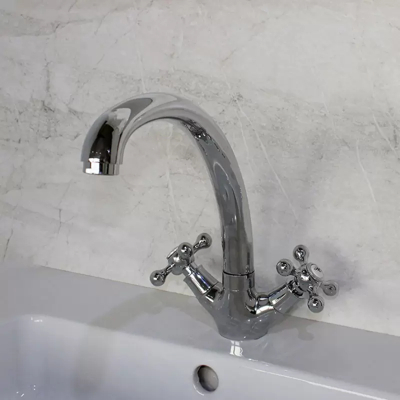 • Dvoručna konfiguracija omogućava korisniku preciznu kontrolu nad temperaturom i protokom vode. Dve odvojene ručice za hladnu i toplu vodu nude mogućnost preciznog podešavanja, što je idealno za različite kuhinjske aktivnosti, bilo da se radi o pranju povrća, posuđa ili pripremi hrane. Ova karakteristika je posebno korisna u domaćinstvima gde se ceni preciznost i kontrola u kuhinji.