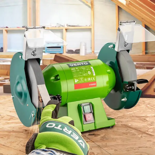 • Dvostrano točilo za oštrenje alata VERTO 51G450 je savršen izbor za sve koji traže električno točilo snage 200W za male radionice. Namenjeno je kako za kućne majstore, tako i za amatere koji žele da obavljaju lagane zadatke u svojim radionicama.