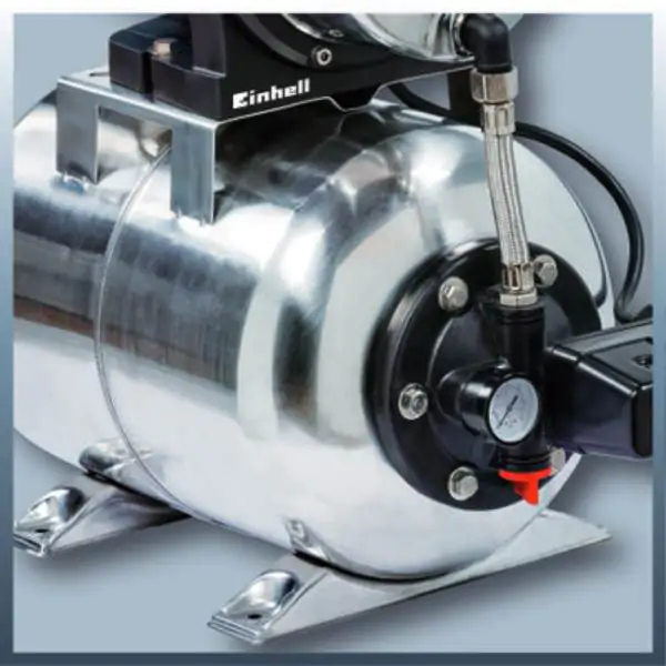 • Jedna od ključnih karakteristika ovog hidropaka je posuda pod pritiskom od nerđajućeg čelika sa kapacitetom od 20 litara, koja dolazi sa integrisanim meračem pritiska za lako očitavanje. Ovaj sistem osigurava da voda ostane pod stalnim pritiskom, spremna za upotrebu bilo kada, dok automatski prekidač za kontrolu pritiska kompenzuje bilo kakve razlike u pritiscima, čime se osigurava konstantan dotok vode.