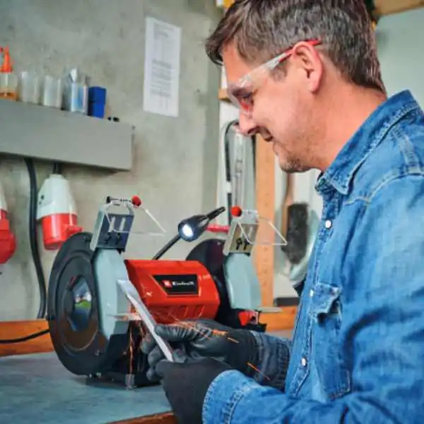 • Einhell TC-BG 200 L dvostruka stona brusilica je praktična mašina za brušenje sa širokom primenom. Dvostruka stona brusilica sa dva brusna točka koja pokreće po jedan motor je neophodan komad opreme u svakoj radionici. Dvostruka stona brusilica se može koristiti za oštrenje makaza, noževa, oštrica, sečiva, burgija i rezača, pa čak i dleta. Pored toga, dvostruka stona brusilica se takođe može koristiti za uklanjanje rđe i korice, kao i za brušenje i poliranje širokog spektra radnih predmeta od drveta, plastike i metala. Dvostruka stona brusilica je posebno pogodna za manje popravke i oštrenje noževa, ali se takođe može koristiti za jače popravke, podešavanje oblika i novo početno brušenje. Robusna kompaktna metalna konstrukcija obezbeđuje dugotrajnost brusilice. Veliki podesivi oslonci su od pomoći za širok opseg primena. Osovina sa kugličnim ležajevima bez zazora omogućava postizanje preciznih rezultata. Iz sigurnosnih razloga, postoje prozori za zaštitu od varnica koji se mogu podesiti bez ikakvog alata, kao i zaštitne haube koje su bočno zatvorene. Četiri gumene stope upijaju vibracije i osiguravaju čvrst i bezbedan položaj tokom rada. Ovaj proizvod dolazi sa diskom za fino i za grubo brušenje (K36/K60).