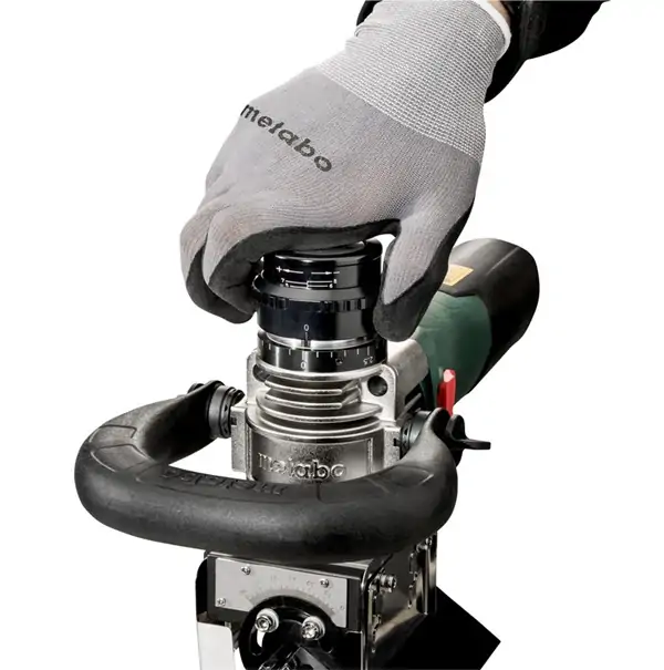 • Metabo KFM 15-10F električna glodalica za obaranje metalnih ivica pruža vrhunske performanse i preciznost u pripremi šava na metalu. Ovaj visokokvalitetni alat omogućava obaranje metalnih ivica do 15 mm sa jednostavnom kontrolom jednim dodirom, zahvaljujući patentiranom podešavanju dubine rezanja bez potrebe za dodatnim alatima, u koracima od 0,1 mm.