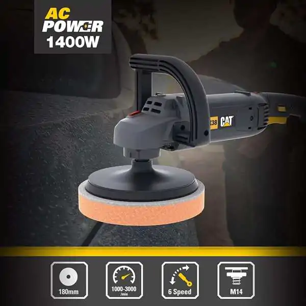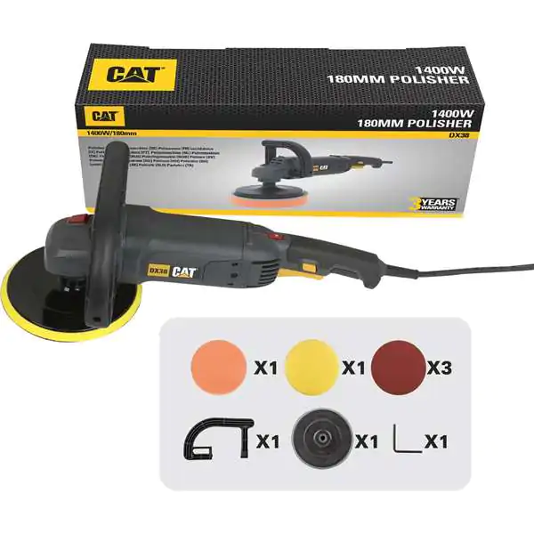 • Električna polirka CAT DX38 snage 1400 W predstavlja profesionalno rešenje za brušenje, poliranje i voskiranje površina. Opširno opremljena funkcijama koje olakšavaju rad, ova mašina osigurava visoku efikasnost i udobnost čak i tokom dužih sesija.