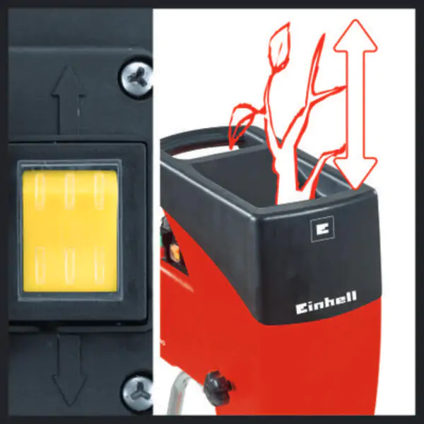 • Robusna šasija sa točkovima i praktična transportna ručka omogućavaju lako i jednostavno premeštanje ove seckalice sa jednog mesta na drugo. Motorni prekidač štiti motor od preopterećenja, dok siguran rad dodatno osiguravaju sigurnosni prekidač i zaštita od ponovnog pokretanja.