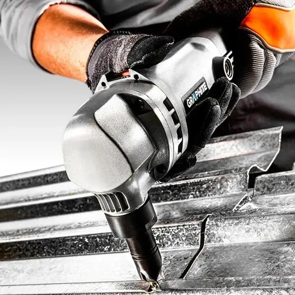 • Električni rezač-glodalica za limove GRAPHITE 59G401 je visokokvalitetni alat namenjen za precizno sečenje različitih vrsta limova, uključujući ravne, valovite i trapezoidne profile. Opremljen snažnim motorom od 500 W, ovaj rezač omogućava efikasno izvođenje ravnih i zakrivljenih rezova.