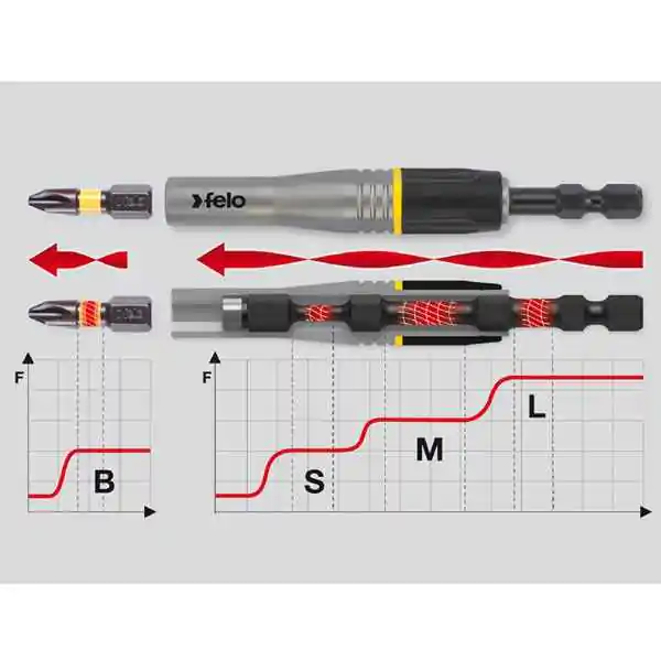 Felo držač bitova magnetni sa pričvrsnim prstenom Felo 1/4" x 74 mmDržač-nastavak sa steznom glavom od nerđajućeg čelika za nastavke 1/4 magnetn ...
