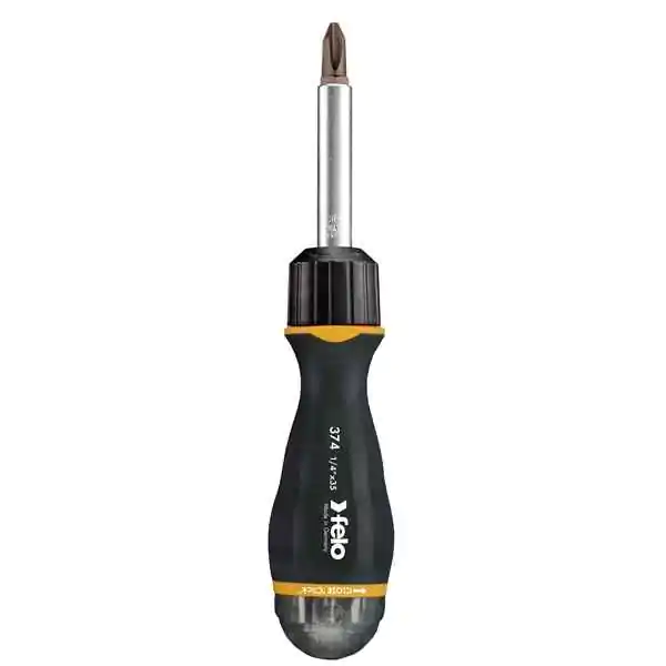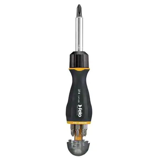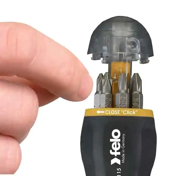 • Felo Reverzibilni držač bitova sa magnetom predstavlja inovativno rešenje koje može zameniti ceo set šrafcigera. Opremljen je čegrtaljkom koja omogućava rotaciju u oba smera - levo i desno, kao i fiksnu poziciju.