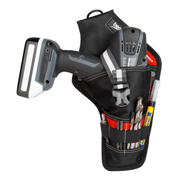 • Sadrži dodatnu pregradu za odlaganje bitova i šrafova, četiri elastične petlje za burgije. Kompatibilna sa Beorol opasačem za alat i prslukom.