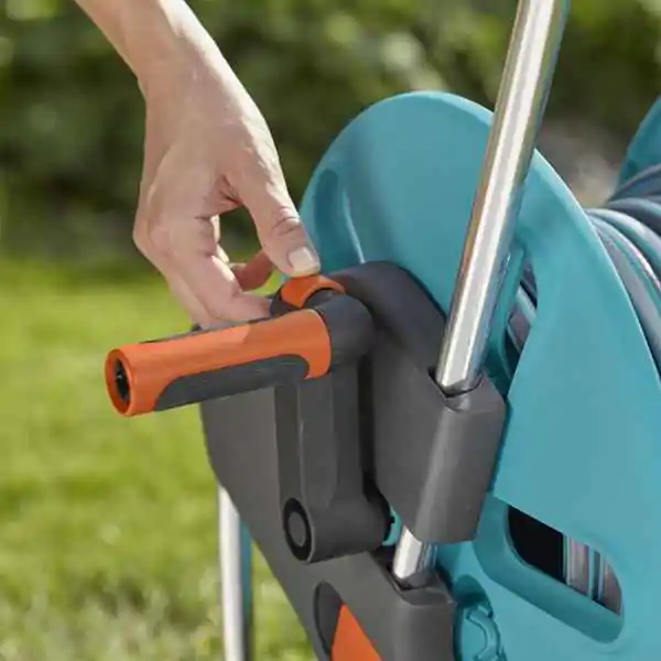 • Ovaj set uključuje GARDENA baštensko crevo iz serije Flex, poznato po svojoj fleksibilnosti i otpornosti. Kolica su dizajnirana za jednostavno namotavanje i odmotavanje creva, čineći zalivanje vrta manje napornim i efikasnijim.