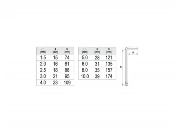 • Dimenzije ključeva: 1.5, 2.0, 2.5, 3.0, 4.0, 5.0, 6.0, 8.0, 10.0 mm