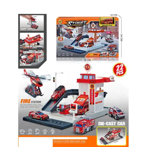 • Ova funkcionalna vatrogasna stanica dolazi sa vatrogasnim vozilom i helikopterom, kao i praktičnim spustom za aute, koji omogućava još zabavniju i dinamičniju igru.