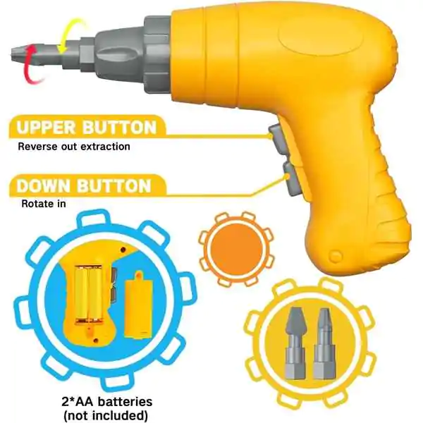 • Set uključuje sve što mališan treba za svoje prve inženjerske avanture: dječji piljevik, čekić, klešta, radio-stanicu, šešir za zaštitu glave, električni bušilica na baterije i druge igračke alatke. Ove alatke omogućavaju djeci da simuliraju prave inženjerske aktivnosti na radnom stolu, pomažući im da razviju bitne vještine od najranije dobi.