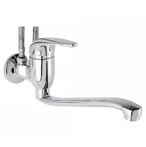 • Ova jednoručna zidna slavina, dizajnirana za horizontalnu instalaciju na jedan otvor, pruža kombinaciju funkcionalnosti i elegantnog dizajna, što je čini savršenim dodatkom za manje kuhinje ili kupatila.