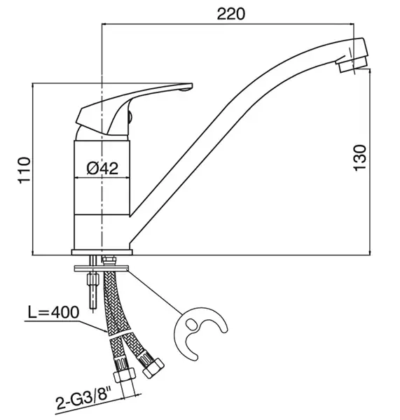 • Sa dužinom lule od 220 mm, obezbeđuje optimalan doseg i fleksibilnost, čineći pranje i pripremu hrane lakšim i efikasnijim.