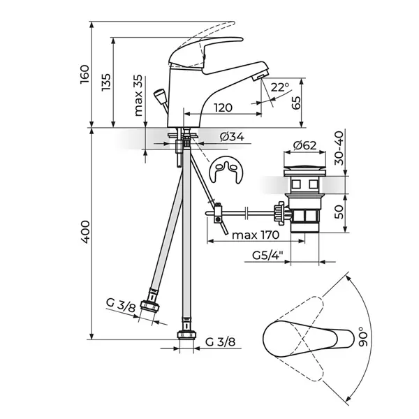 • Naziv proizvoda: Jednoručna slavina - baterija za lavabo - sa metalnim odlivnim ventilom King J301001M ROSAN