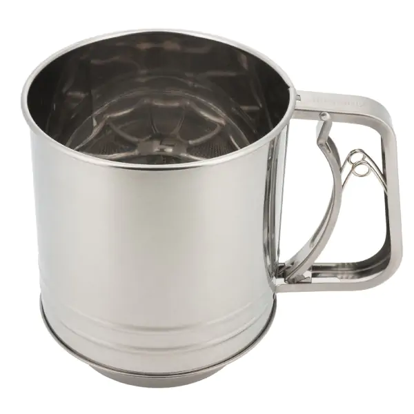 • Sito za brašno od nerđajućeg čelika je nezamenljiv pomoćnik u svakoj kuhinji, dizajnirana da brzo i efikasno proseje i prozrači vaše brašno za savršeno glatke i vazdušaste rezultate u pečenju. Sa generoznim kapacitetom od 450 grama i praktičnim dimenzijama (prečnik 12 cm, visina 13 cm), omogućava obradu potrebnih količina bez preopterećenja. Njena izdržljiva konstrukcija od visokokvalitetnog nerđajućeg čelika garantuje dug vek trajanja i jednostavnu higijenu, dok ergonomski oblikovana drška i mehanizam za jednostavno rukovanje čine svaku upotrebu intuitivnom. Savršen alat za domaće pekara, ovo sito garantuje da će svaki kolač, torta ili hleb biti savršene teksture, čineći pripremu poslastica istinskim uživanjem.