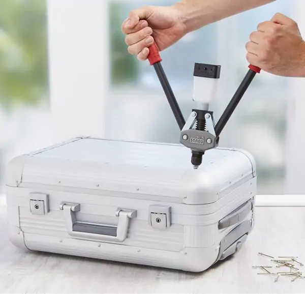 • Aluminijumsko kućište alata i kovana ručka. Isporučuje se sa četiri adaptera. Namenjen za rad sa aluminijumskim A2,4, A3, A4, A5, čeličnim S3 i S4 i bakarnim pop-nitnama C4.