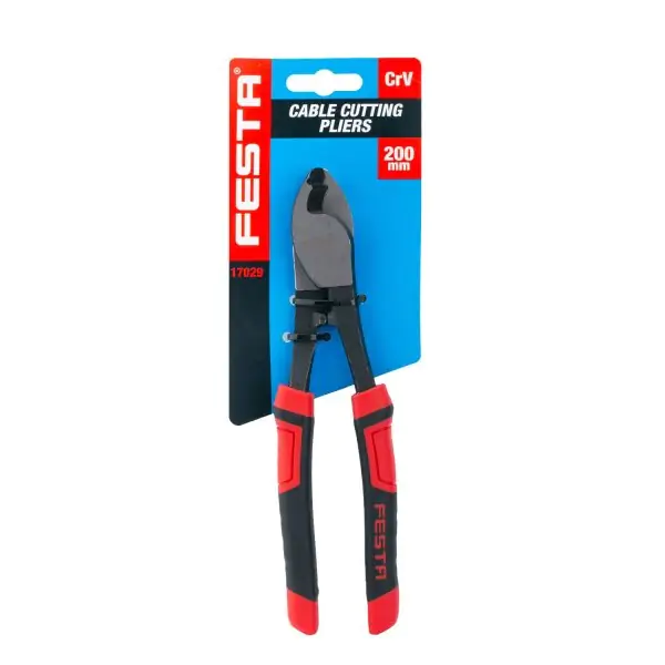 • Klešta za sečenje sajle 200mm Festa su dizajnirana za precizno i efikasno sečenje različitih materijala, uključujući kablove do 6 mm i žice do 5 mm. Ova klešta mogu se takođe koristiti za sečenje žica, kablova i kablova kalaja. Imaju kaljene čeljusti i specijalno oblikovane čeljusti koje omogućavaju sečenje bez naknadnog upletanja. Klešta su opremljena oprugom za otvaranje i mehanizmom za zaključavanje, što olakšava upotrebu i čini ih pouzdanim alatom u radionici ili za kućnu upotrebu. Ergonomske obložene ručke od plastike pružaju udobno držanje i smanjuju zamor tokom dužeg korišćenja. Ova klešta dolaze u blister pakovanju, spremna za upotrebu.