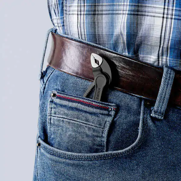 • Knipex Cobra® XS Optimalni pristup u najužim prostorima: posebno kompaktan dizajn sa vrlo uskom glavom. Precizna podešavanja jednom rukom i to umetanjem za optimalno prilagođavanje raznim veličinama predmeta obrade.Izuzetna otpornost na habanje garantuje dugotrajnu zategnutost. Kapacitet stezanja ima prečnik 28 mm (1"), širina na ravnim površinama do 24 mm – samo za dužinu od 100 mm. Zglob: dvostruki vodič obezbeđuje visok kvalitet i izdržljivost. Stezne površine sa posebno ojačanim zubima, tvrdoće otprilike 60 HRC. Samo-zabravljenje na cevima i maticama: nema proklizavanja na materijalu i potrebna mala sila na ručkama. štit sprečava zgnječenje prstiju. Precizno prilagođavanje zahvaljujući 11 položaja za podešavanje. - Položaja podešavanja: 11 - Kapacitet za matice, veličina ključa: Ø 1 in - Kapacitet za matice, veličina ključa: 24mm - Kapacitet za cevi (prečnik): Ø 28mm