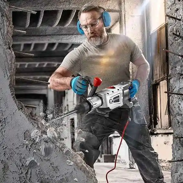 • Kućište zupčanika je ojačano legurom magnezijuma, pružajući dodatnu izdržljivost i otpornost na habanje. Čekić je opremljen fleksibilnim i čvrstim kablom za napajanje dužine 4 metra, dizajniranim za profesionalnu upotrebu u različitim uslovima.