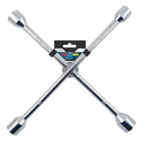 • Krstasti ključ za točkove je univerzalan i neophodan alat za sve vlasnike putničkih vozila, auto-radionice i vulkanizerske servise. Zahvaljujući svom praktičnom krstastom dizajnu, omogućava lako i efikasno odvrtanje i zatezanje šrafova na točkovima. Opremljen je sa tri kraka sa nasadima dimenzija 17, 19 i 21 mm, što ga čini kompatibilnim sa većinom standardnih točkova na putničkim automobilima. Dužina kraka sa nasadima od 350 mm omogućava dobar prenos sile i lakše odvrtanje čak i čvrsto zategnutih šrafova. Centralni prihvat od 1/2″ pruža dodatnu fleksibilnost u radu, dok je spoj krakova dodatno ojačan zakivanim čeličnim limom za veću izdržljivost i dug vek trajanja. Jednostavan je za upotrebu, pouzdan i idealan kako za profesionalnu, tako i za kućnu upotrebu.