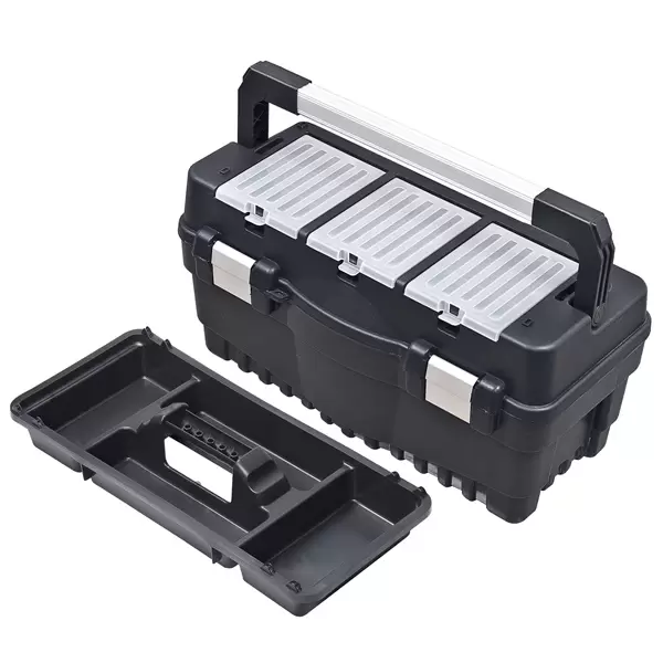 • Sadrži aluminijumsku ručku i rezu, duboka kaseta sa fiokom i skladištenje bitova, ručka sa strane, rupa za katanac, prenosna radionica.