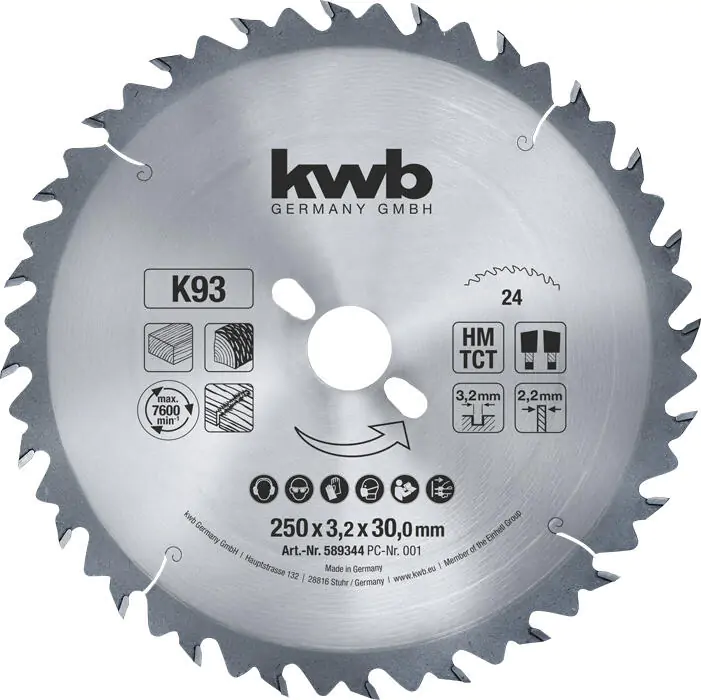 • Naziv proizvoda: KWB 49589344 Rezni disk za cirkular 250x30 24Z, HM, za drvo/plastiku