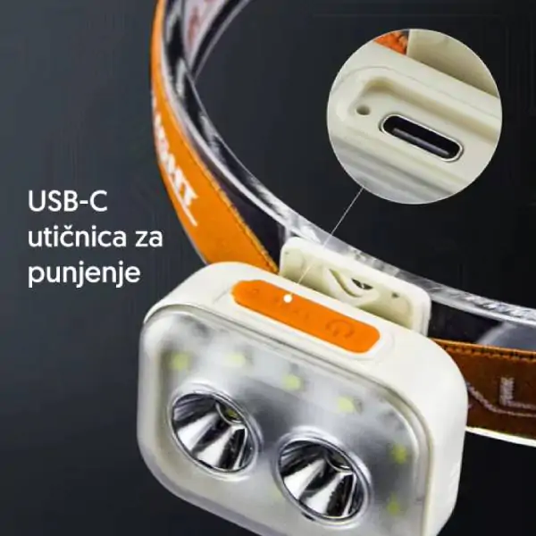 • Višenamenska punjiva lampa sa gumenom trakom i LED diodama visokog inteziteta