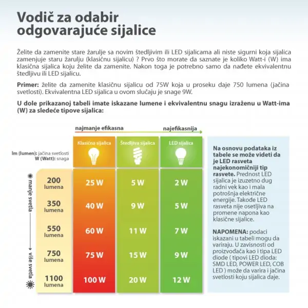 • Boja svetlosti Toplo bela / Hladno bela / Dnevna svetlost