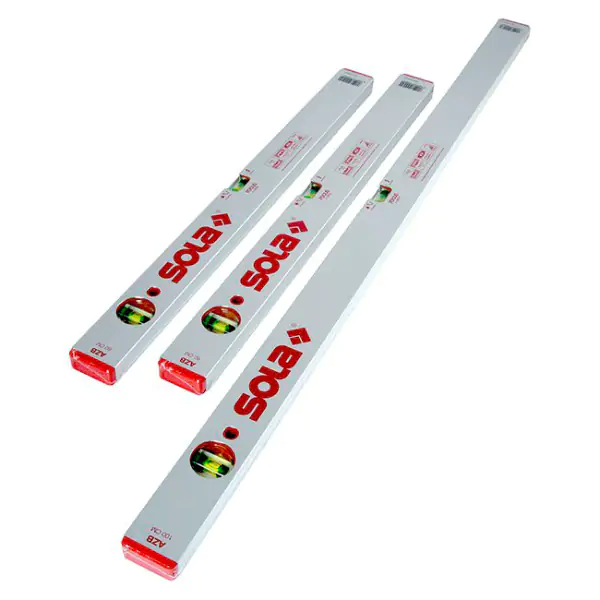 • SOLA AZB je kompaktna i visokoprecizna profesionalna libela sa dve ugradene bočice – horizontalnom i vertikalnom – dizajnirana za zahtevne građevinske i zidarske radove. Izrađena je od čvrstog eloksiranog aluminijumskog profila preseka 49×23 mm, sa težinom od 590 g/m, što joj daje optimalnu stabilnost i lakoću rukovanja. Srebrna eloksirana površina povećava otpornost na habanje i koroziju. Libela koristi patentirane SOLA FOCUS bočice sa uveličavajućim sočivom (+20%) i optimizovanom svetlećom podlogom, omogućavajući brzo, jasno i precizno očitavanje čak i pri slabom osvetljenju. Akrilne bočice su otporne na lomljenje i imaju 30-godišnju garanciju protiv curenja. Sa tolerancijom merenja od 0,50 mm/m (0,029°) u standardnom i 0,75 mm/m (0,043°) u obrnutom položaju, SOLA AZB garantuje visoku tačnost kako za horizontalna tako i za vertikalna merenja. Završne kapice (zaptivači) apsorbuju udarce i štite profil od oštećenja, čineći je pouzdanim i dugotrajnim alatom za svakog profesionalca.