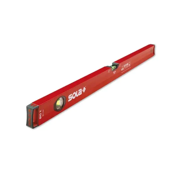 SOLA BIG X je profesionalna libela sa dve bočice – jedna horizontalna i jedna vertikalna – namenjena preciznom nivelisanju i merenju u građevinarstvu i zanatskim radovima. Presek profila iznosi 52×25 mm, a završne kapice (zaptivači) obezbeđuju apsorpciju udara i dugotrajnost alata.
