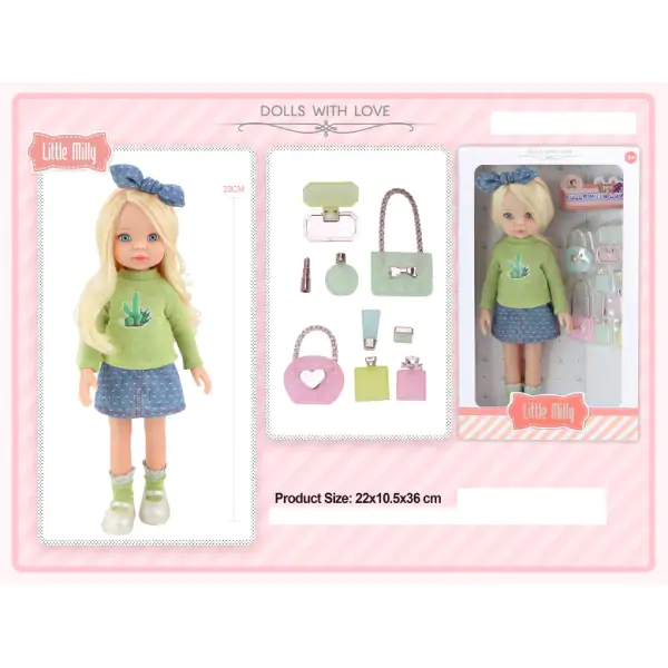 Lutka Milly visine 30 cm donosi sate zabave kroz igru mode i stilizovanja. U pakovanju se nalaze razni aksesoari kao što su tašnice, parfemi i šminka za lutku, što omogućava devojčicama da kreiraju različite modne kombinacije i zanimljive scenarije. Set podstiče kreativnost, maštovitost i igru uloga, razvijajući osećaj za stil i estetiku kod najmlađih.