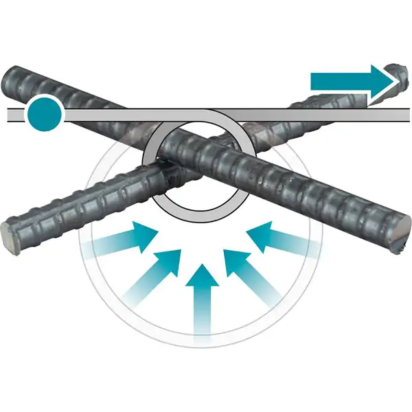 • Maksimalni kapacitet vezivanja četiri armature: (16 x 16) x (16 x 16) mm