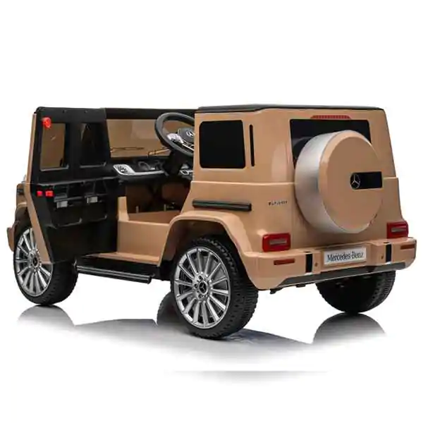 • Licencirani Mercedes Benz G500 Khaki 4×4 sa premium opremom donosi vrhunsko iskustvo vožnje za najmlađe, osmišljen sa autentičnim detaljima koji pružaju radost i osećaj pravog terenskog vozila. Opremljen premium paketom opreme, uključuje meko kožno sedište i EVA gume najvišeg kvaliteta za udobnu i sigurnu vožnju, prednja i zadnja svetla za autentičan izgled, te vrata sa sigurnosnom bravom za dodatnu zaštitu. Sa četiri snažna motora od 25W (4×4, ukupno 100W) i kvalitetnim akumulatorom od 12V 7A, garantuje dugotrajnu zabavu i odlične performanse. Roditelji mogu preuzeti kontrolu putem 2.4G daljinskog upravljača, dok mališani uživaju u samostalnoj vožnji uz pomoć papučice za gas. Realističan zvuk motora dodatno upotpunjuje doživljaj. Dimenzija 114 x 67 x 53.5 cm i nosivosti 50 kg, izrađen od najkvalitetnijih materijala u skladu sa EU standardima (AS, CE, EN71-1/-2/-3, EMC), ovaj Mercedes pruža sigurnu i autentičnu zabavu.