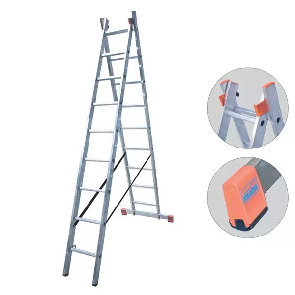 • Dvodelne merdevine od aluminijuma sa porubljenim gazištem mogu da se  koriste kao: prislone, samostojeće i merdevine na izvlačenj