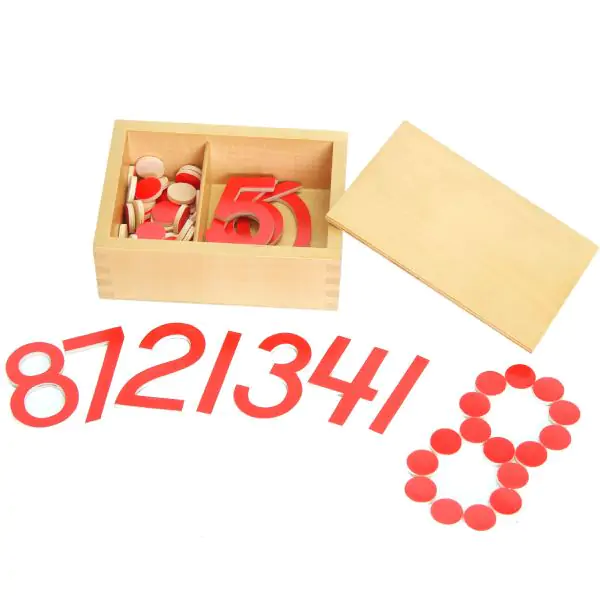Montesori Matematičko uporedjivanje brojevi i žetoniSet sadrži drvene brojeve i žetone, u drvenoj kutiji sa dve pregradeCilj rada sa ovim proizvodom j ...