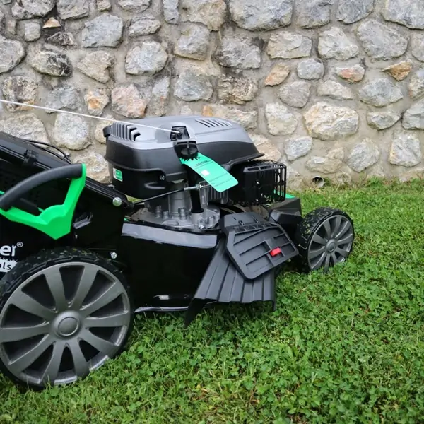 • Kosačica je opremljena snažnim 4-taktnim OHV motorom zapremine 196 cm³ koji pruža impresivnu snagu od 6,0 KS, omogućavajući vam lako savladavanje različitih terena i trava. Kapacitet korpe za travu je 70 litara, što vam omogućava dugotrajno košenje bez čestog pražnjenja.