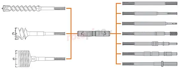 • Pojedini alati SDS max tipa koje proizvodi Makita ali i drugi renomirani brendovi su zapravo alati uskospecijalizovane namene. Jedan od takvih alata jeste i nastavak SDSMAX za Dreconect koji predstavlja svojevrsnu vrstu adaptera za obradu betona.
