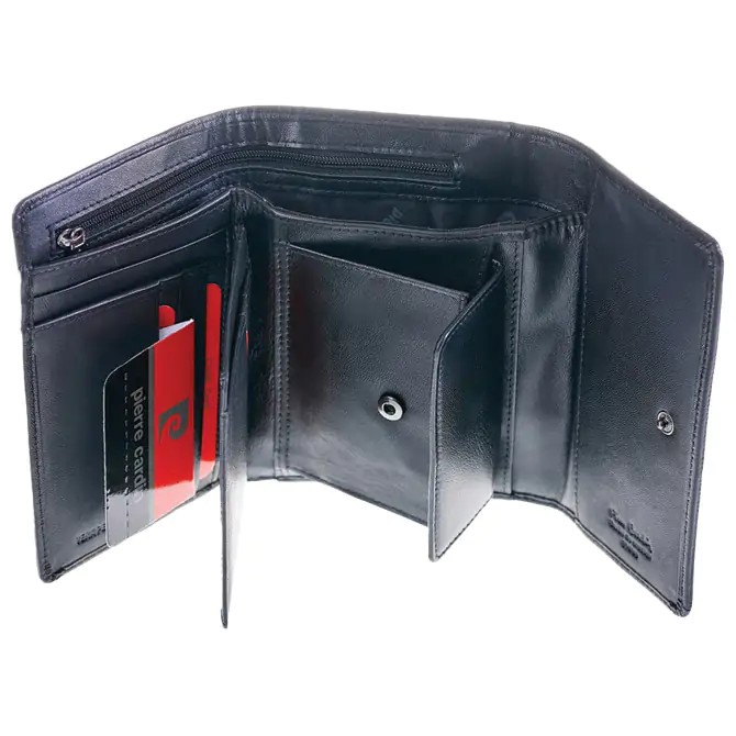 • Pierre Cardin ženski kožni novčanik u crvenoj boji kombinuje elegantan dizajn i praktičnost, sa zatvaranjem na kopču i pažljivo osmišljenim unutrašnjim rasporedom. Sastoji se od pregrade sa zipom za sitan novac, više pretinaca za kartice i prostora za slike, omogućavajući uredno odlaganje svih potrepština. Dimenzija 15,5 × 10,3 × 3 cm.