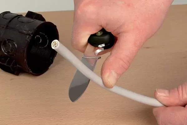 • Nož za kablove sa plastičnom drškom, dužina sečiva 85 mm WOLFCRAFT.