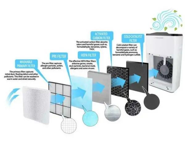 • Petostepeni filter: primarni filter, predfilter, filter sa aktivnim ugljem, hepa H11 filter i hladan filter katalizatora
