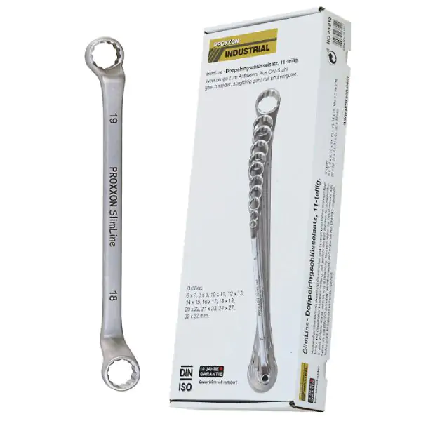 • Proxxon SlimLine ključevi karakterišu se glatkom završnom obradom, što pruža prijatan osećaj prilikom rukovanja. Ova ergonomska prednost omogućava dugotrajnu upotrebu bez osećaja zamora u rukama. Dvostruko niklovanje i jednostruko hromiranje garantuju optimalnu zaštitu površine, čime se produžava vek trajanja alata. Laserski ispisane veličine su jasno vidljive, što olakšava brzu identifikaciju potrebnog ključa.