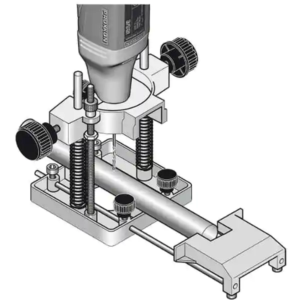 • Dodatna prednost: Proxxon OFV podloga može se koristiti i kao vodilica za bušenje okruglih delova, zahvaljujući prizmatičnoj osnovi koja obezbeđuje čvrst oslonac za cilindrične predmete.