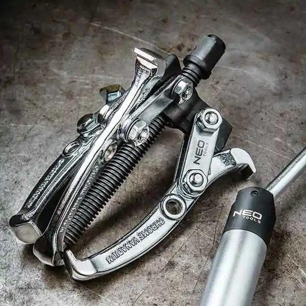 • NEO TOOLS 11-857 je profesionalni trokraki izvlakač (radapciger) izrađen od hrom-vanadijum (Cr-V) čelika, poznatog po izuzetnoj čvrstoći i dugotrajnosti. Namenjen je za demontažu delova ugrađenih koaksijalno, kao što su ležajevi, remenice ili zupčanici.
