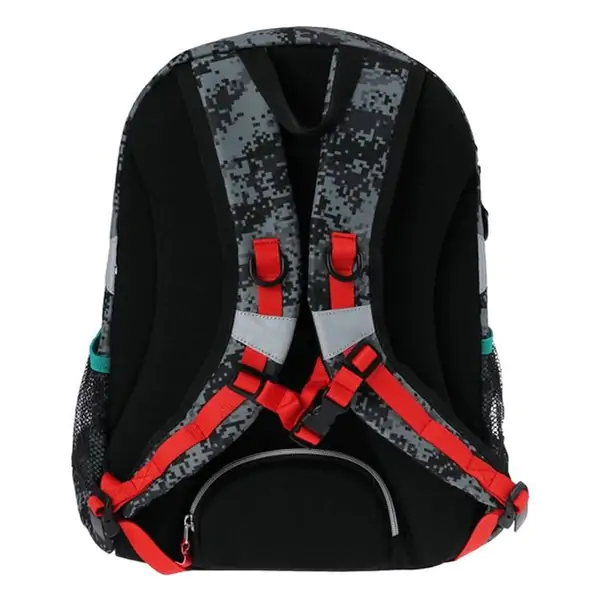 • Samostojeći, triput opšiveni, vodootporna tkanina, visokokvalitetni poliester, refletkujuće bezbedonosne trake, podesive ramenice, lagan i izdržljiv, džepovi sa strane visokog kapaciteta, trake za raspodelu težine, 360° ventilirajuća leđa, dvostruki organizer i štampana postava.