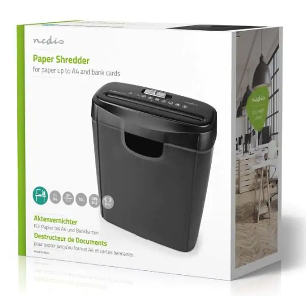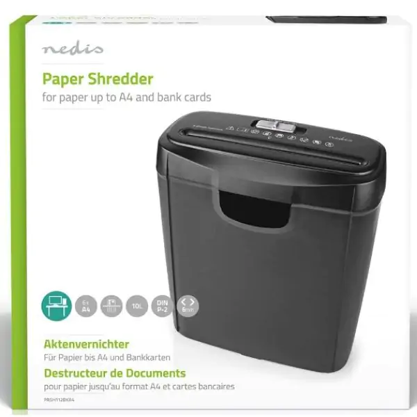 • Kapacitet sečenja: Može istovremeno usitniti do 6 listova papira formata A4, kao i kreditne ili bankovne kartice.