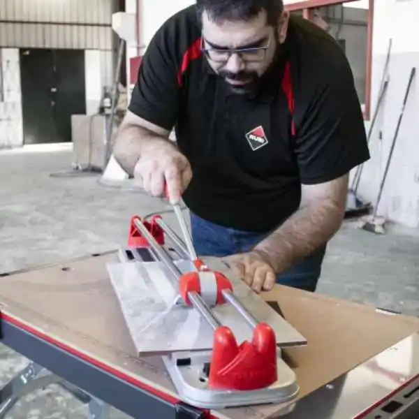 • Visoka Preciznost i Dugotrajnost: RUBI STAR-42 je opremljen pokretnom lomilicom za dijagonalne rezove, kao i osnovom koja apsorbuje udarce, što omogućava precizne i čiste rezove.