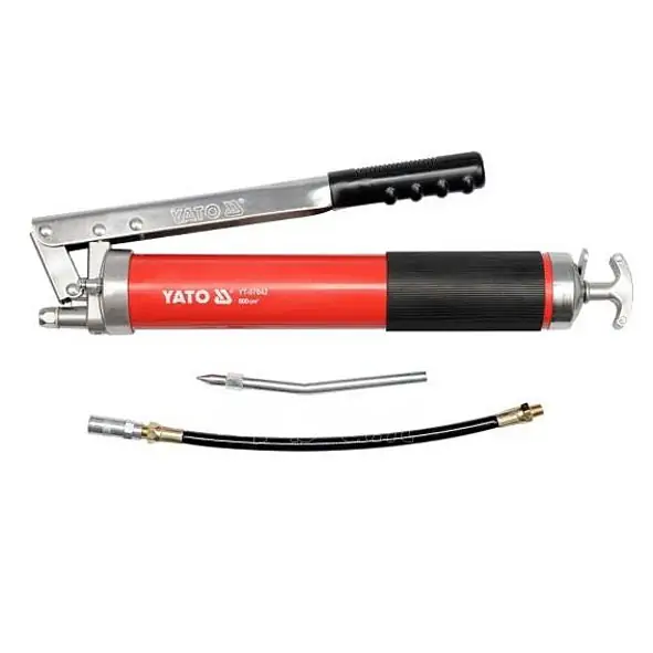 Ručna dekalamit mazalica sa crevom 600cm3 YatoDekalamit mazalica, čvrsta, visokog kapaciteta i pritiskaZa podmazivanje mašina i opreme, preporu ...